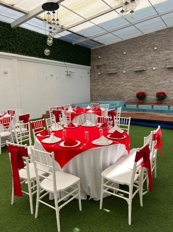 Disfruta sin preocuparte por el clima: nuestro jardín techado con alberca climatizada te ofrece el espacio perfecto para celebrar como siempre lo soñaste.